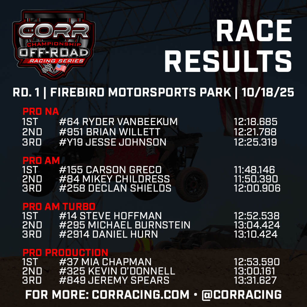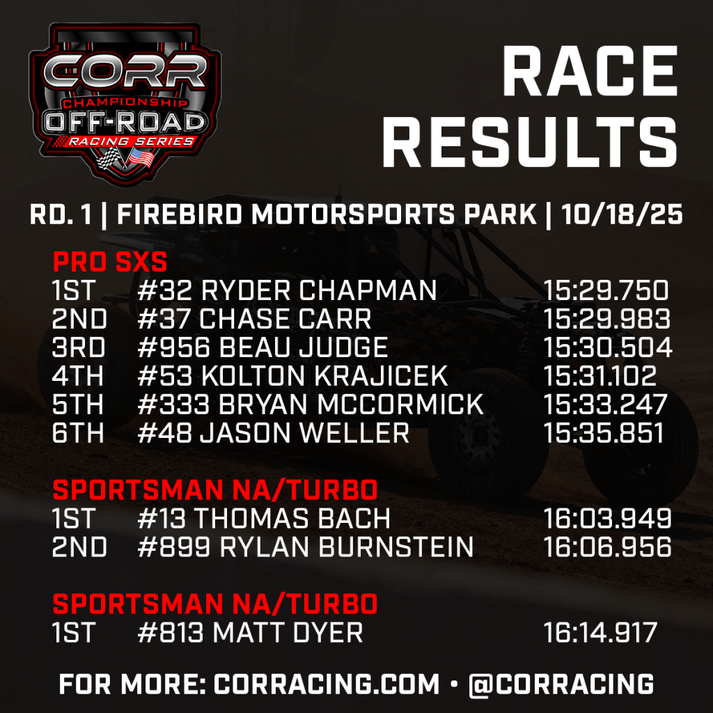 Podium finishers from CORR 2025-26 Round 1 at Firebird Motorsports Park were as follows: