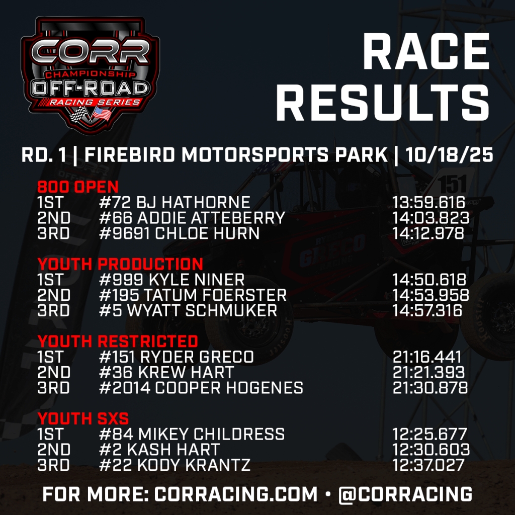 Double or nothing was the theme of the day at Firebird Motorsports Park on Sunday, as Championship Off-Road Racing (CORR) wrapped up its first of five doubleheaders on the 2025-26 campaign. Some racers managed to sweep their classes, and others would end the day wondering what might have been.