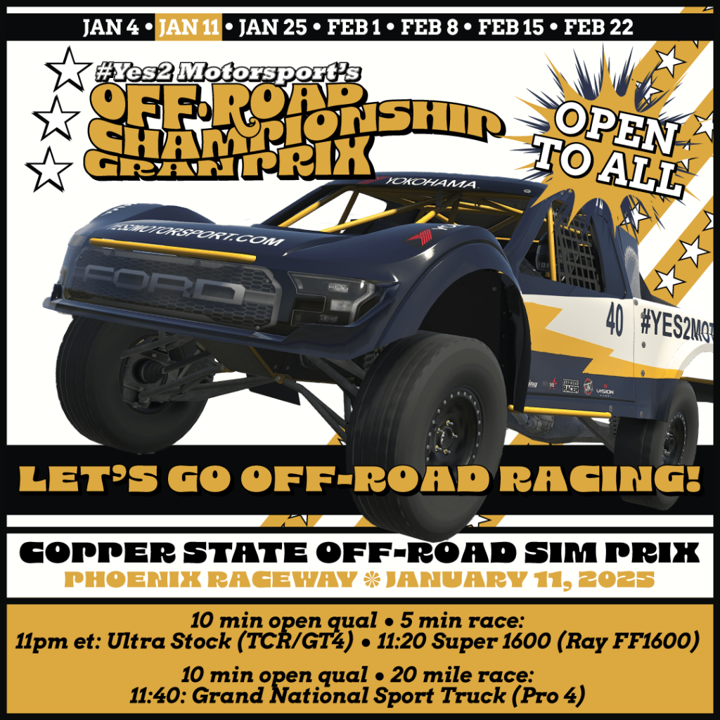 - January 11: Copper State Off-Road Sim Prix | Phoenix RX