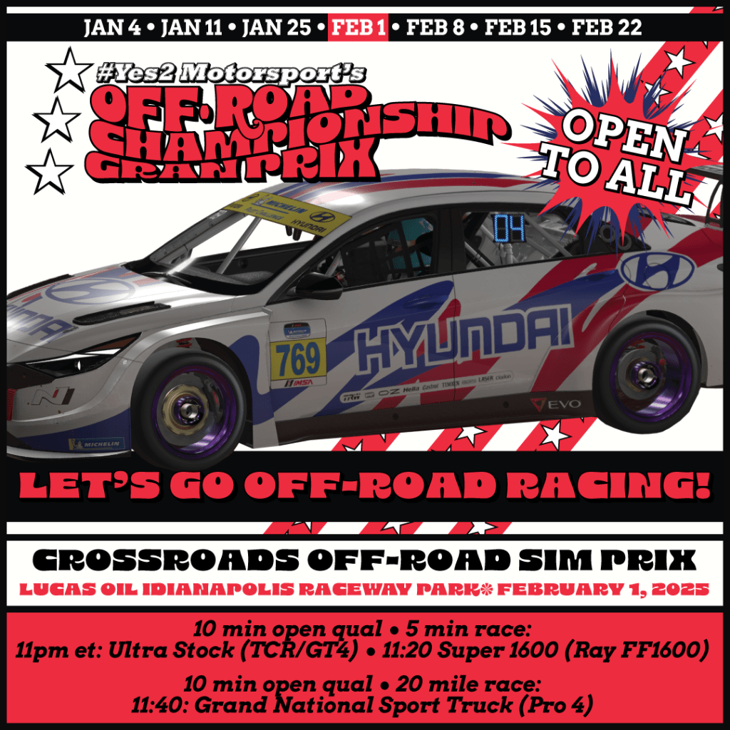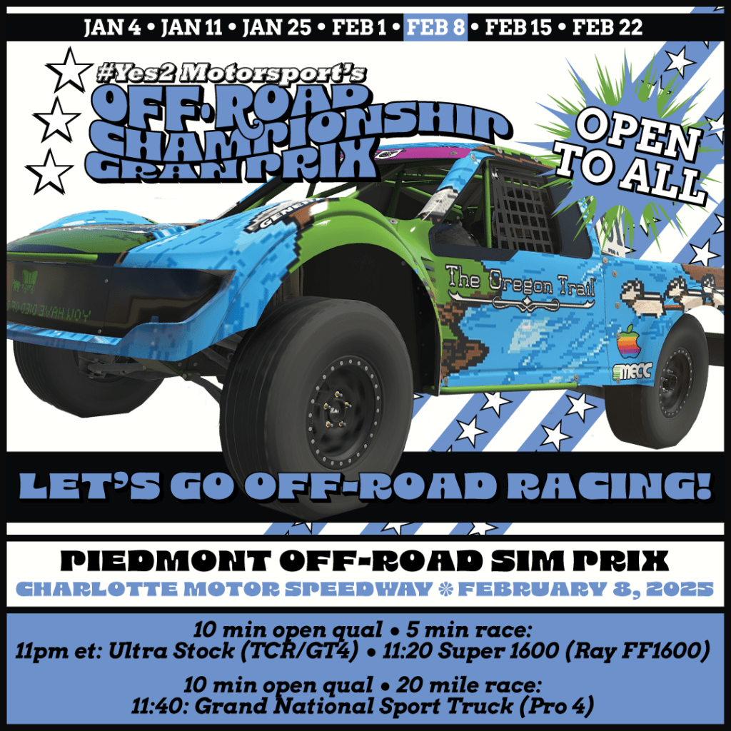 - February 8*: Piedmont Off-Road Sim Prix | Charlotte RX