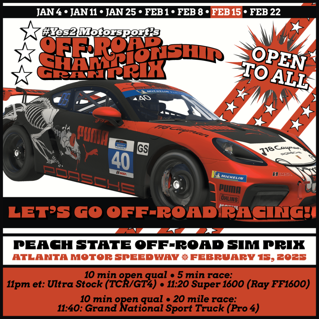- February 15*: Peach State Off-Road Sim Prix | Atlanta RX Long