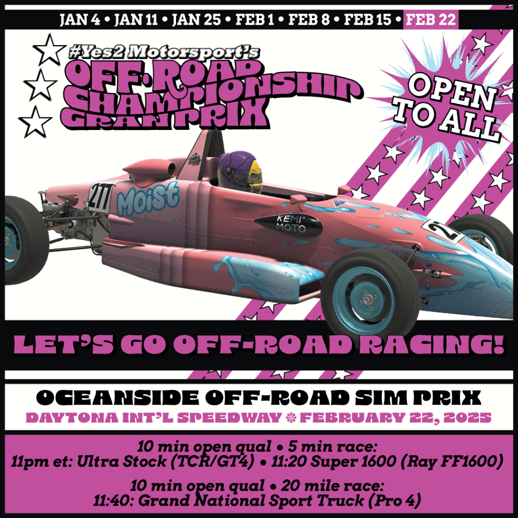 - February 22*: Oceanside Off-Road Sim Prix | Daytona RX Long